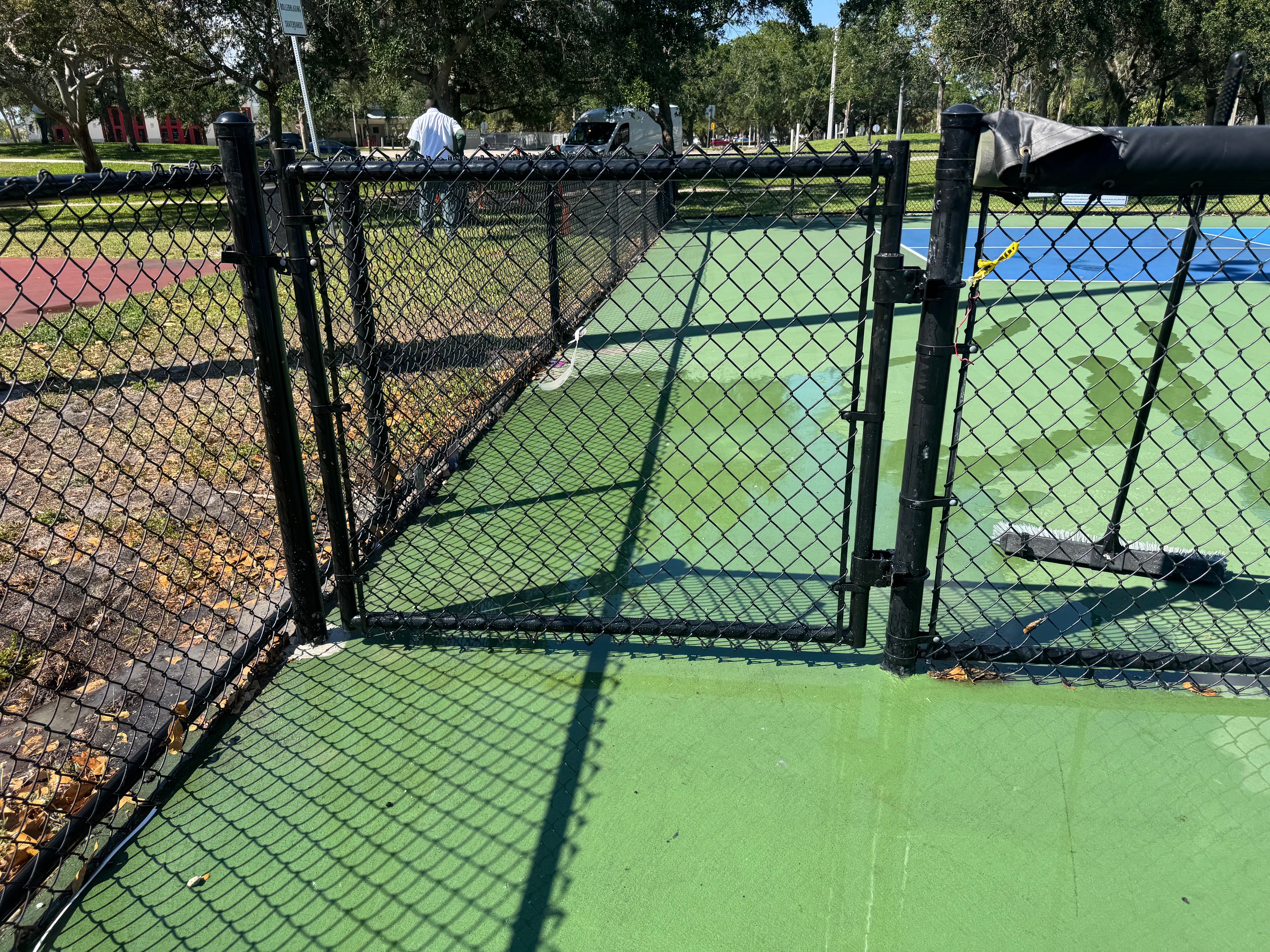 Green chain link fencing blends seamlessly with landscapes, making it a popular choice for parks, residential yards, and community spaces. The vinyl coating adds an extra layer of protection against rust and corrosion, extending the fence’s lifespan—perfect for South Florida’s coastal environment.