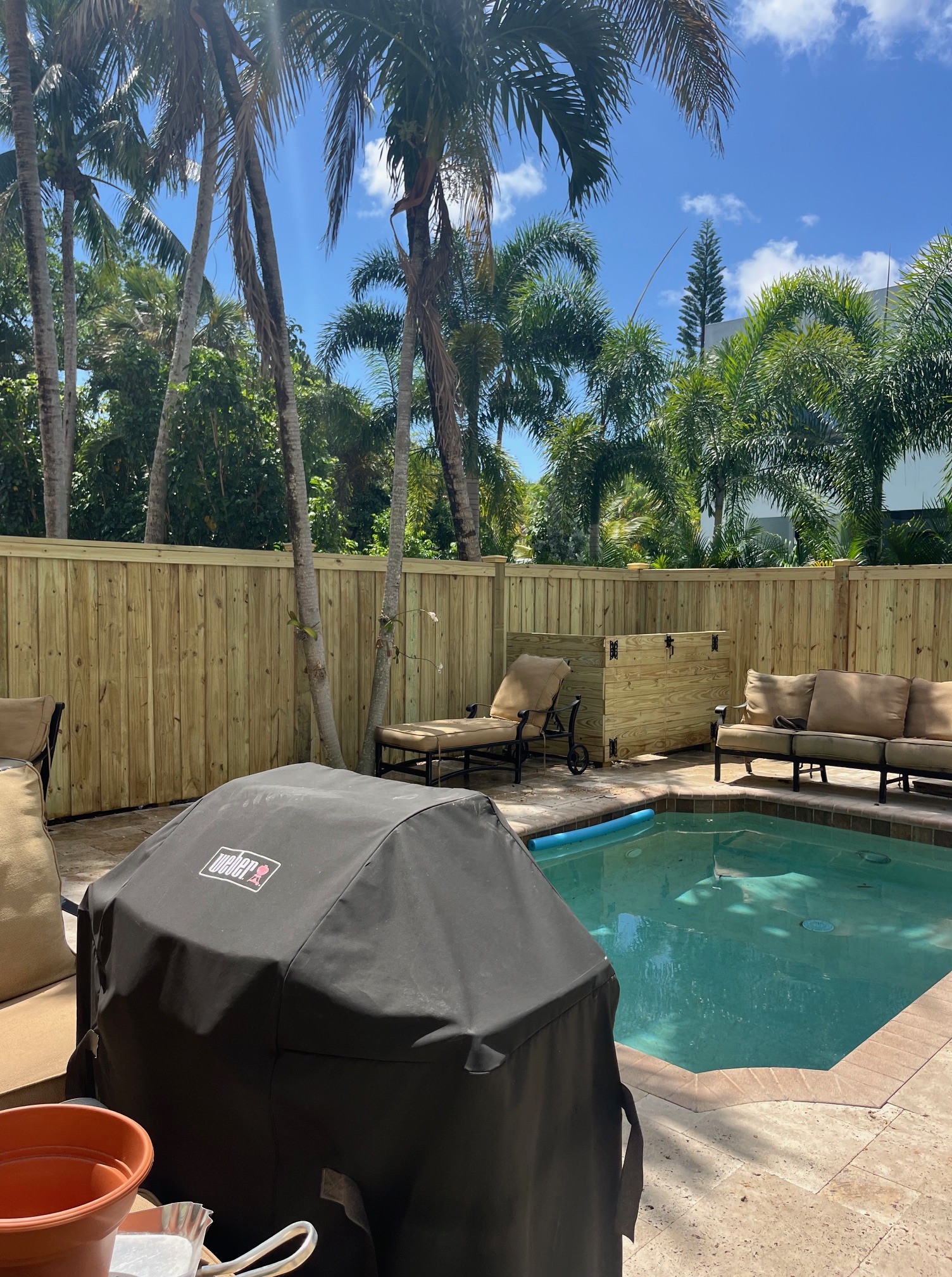 With the heat, humidity, and occasional storms we get in South Florida, a Good Neighbor fence made from pressure-treated wood or cedar is a solid option. Add a sealant or stain, and it can last for years while holding up against the elements.